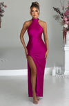 Here's to the nights you'll remember because of the fits you won't forget. You'll be unforgettable in Etta, our luxe maxi made from bias cut satin that skims beautifully over the body. The dress is completely backless with a high neck and an oversized tie neck detail. Elevate any look with Etta, platform heels and a sleek knot.