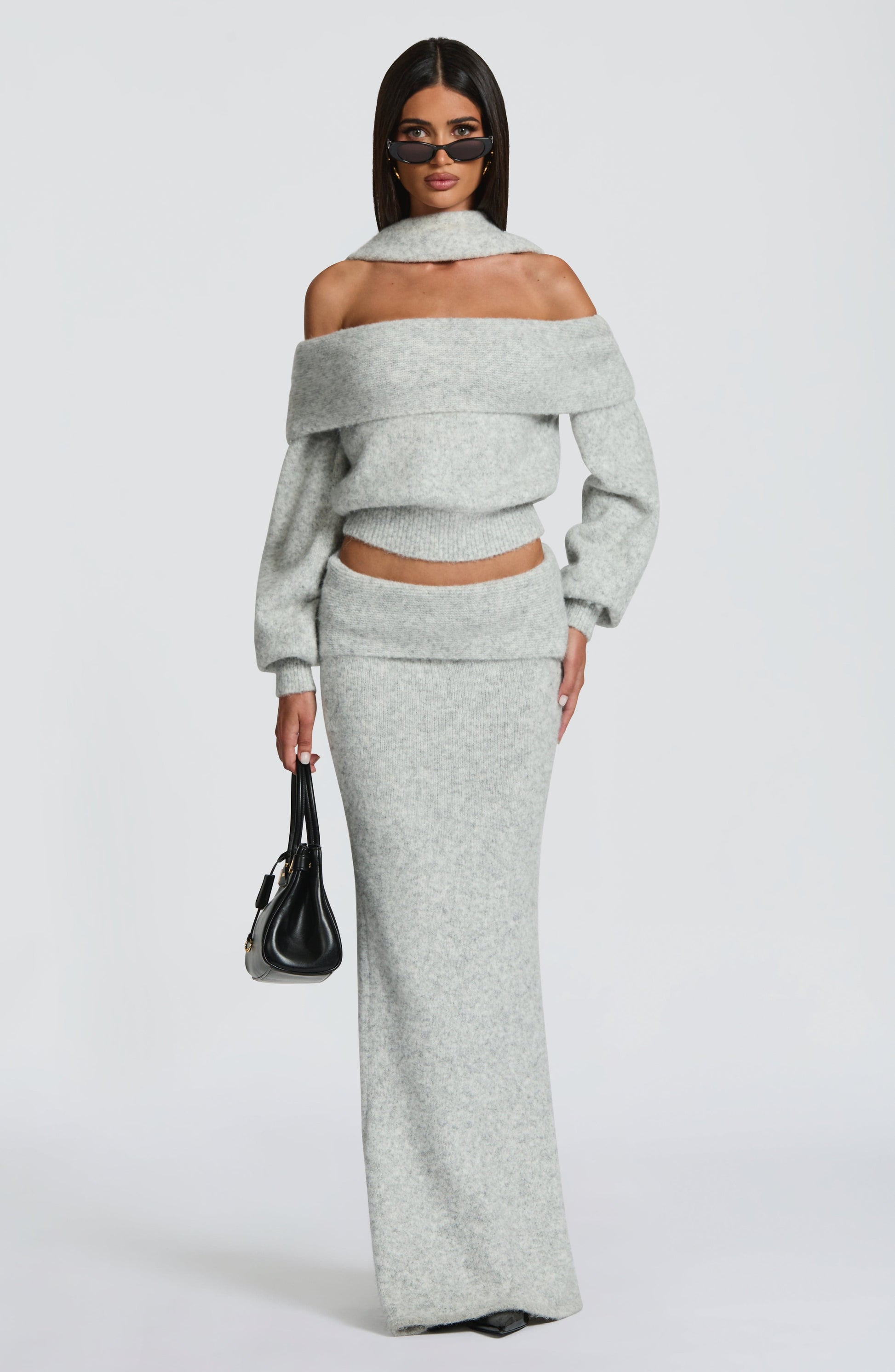 The Andie Maxi Skirt in Light Grey Marl offers a refined silhouette with its soft knit fabric and maxi length. Featuring a wide, fold-over waistband and a fitted hip that gracefully flares at the hem, it combines comfort with elegant style.